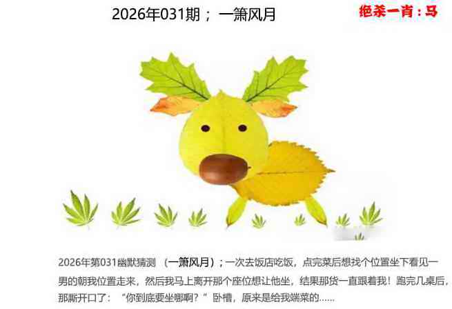 2026年第030幽默猜测(龙飞凤舞);医生:去给那位今天出院的病人注射一针镇静剂。